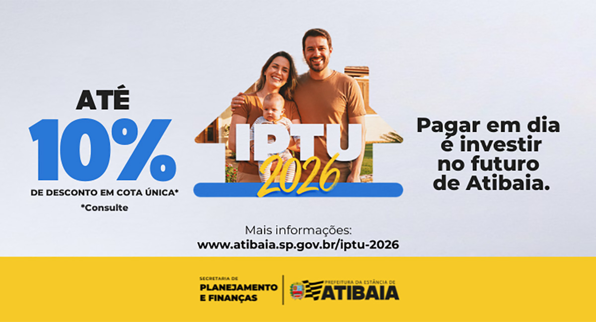 Os carnês do Imposto Predial e Territorial Urbano (IPTU) referentes ao exercício de 2026 começaram a ser distribuídos pelos Correios aos proprietários e compromissários de imóveis em Atibaia. A orientação é que os contribuintes fiquem atentos ao recebimento e aos prazos de vencimento.